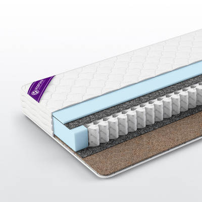 Недорогой популярный матрас на основе пружинного блока TFK 500 с разной жёсткостью сторон. Применение натуральной кокосовой койры с одной стороны обеспечивает высокую жесткость и эффективное распределение весовой нагрузки по спальному месту. Вторая сторона за счет сочетания термовойлока с эластичным пенополиуреатном более мягкая и подстраивается под анатомическую форму тела пользователя.
