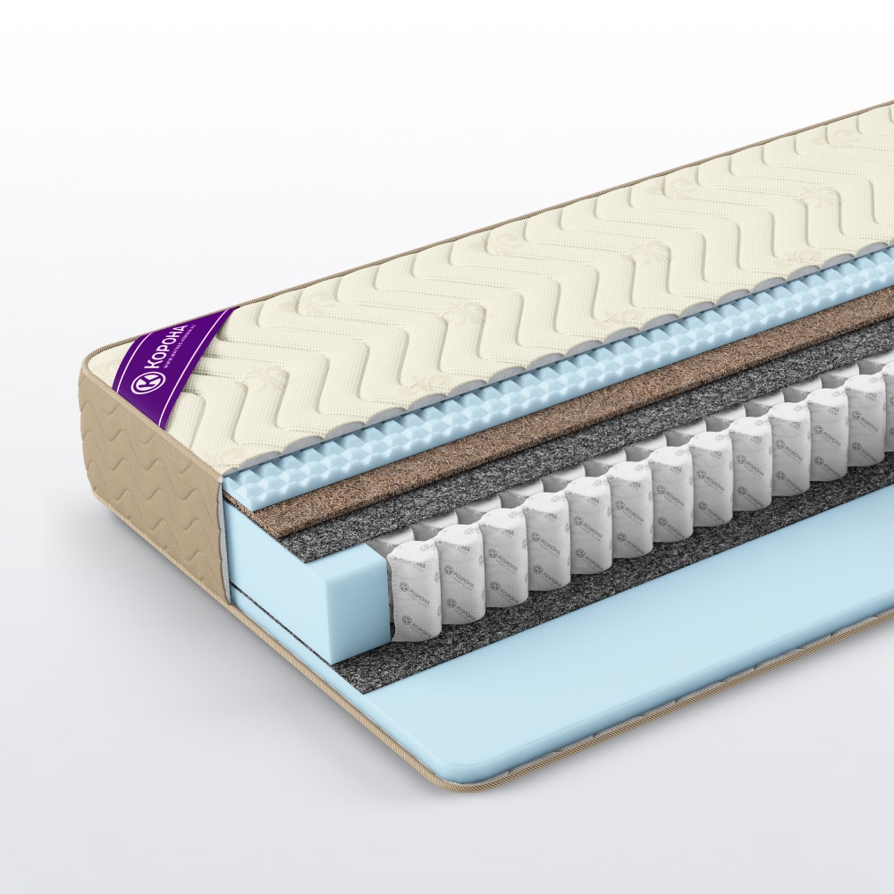 Блок независимых пружин TFK 500 - конструкция из высокоуглеродистой закаленной стали, в которой каждая пружина упакована в отдельный чехол из спанбонда и работает локально. Матрас не скрипит, а пружины защищены от коррозии и пыли.