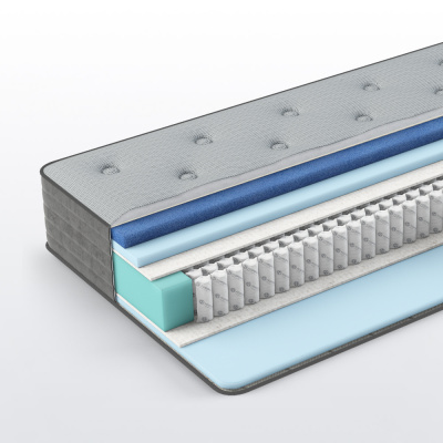 Ортопедический матрас с высоким уровнем комфорта и долговечности. Основой матраса является независимый пружинный блок «Multipocket» S 1000, который обеспечивает оптимальное распределение нагрузки и точечную поддержку тела. Инновационный материал «Elax» с ячейками разного размера создаёт комфортную поверхность для сна. Сочетание пенополиуретана и бикоттона в слоях матраса обеспечивает среднюю жёсткость. Усиление конструкции достигается за счёт использования пены «Armoflex» в боковинах. Чехол выполнен из итальянского трикотажа «PESCODY» с добавлением натуральных волокон, что способствует улучшению теплообмена и повышает долговечность изделия.