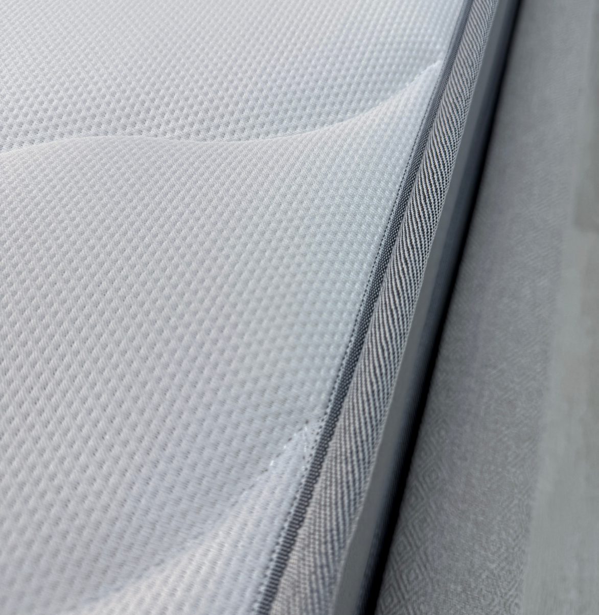Короб ППУ - Элемент конструкции матраса, усиливающий жесткость пружинных моделей по краям, предотвращая проседание при регулярной нагрузке. Особенно важен при локальных нагрузках на борт матраса (посадка, подъем). Используются два вида пен: стандартная у изголовья и повышенной плотности в боковых зонах.