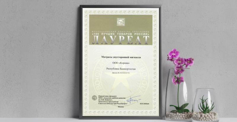 Мебельная фабрика «Корона» подтвердила статус одного из лидеров отечественной мебельной индустрии, став лауреатом престижного всероссийского конкурса программы «100 лучших товаров России». Компания была удостоена высшей награды в категории матрасов, а также получила диплом за свои интерьерные кровати.