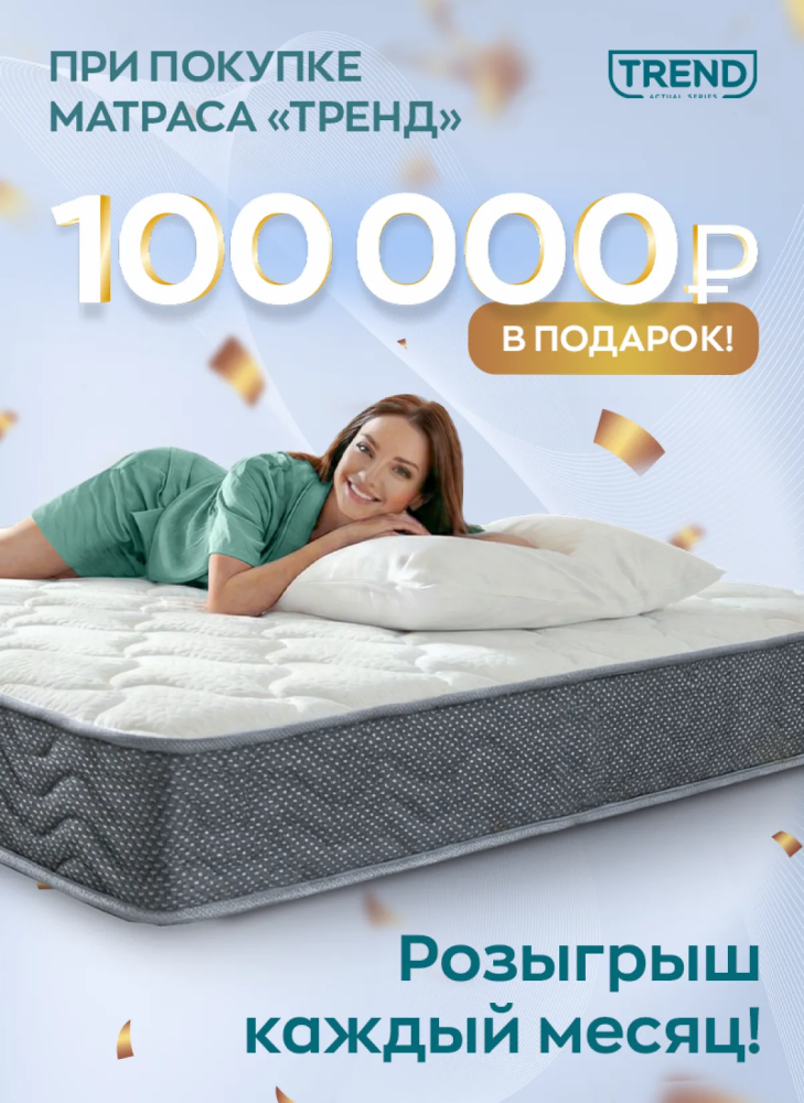 —Ежемесячно разыгрываем 100 000 рублей за покупку матраса серии «Тренд»!